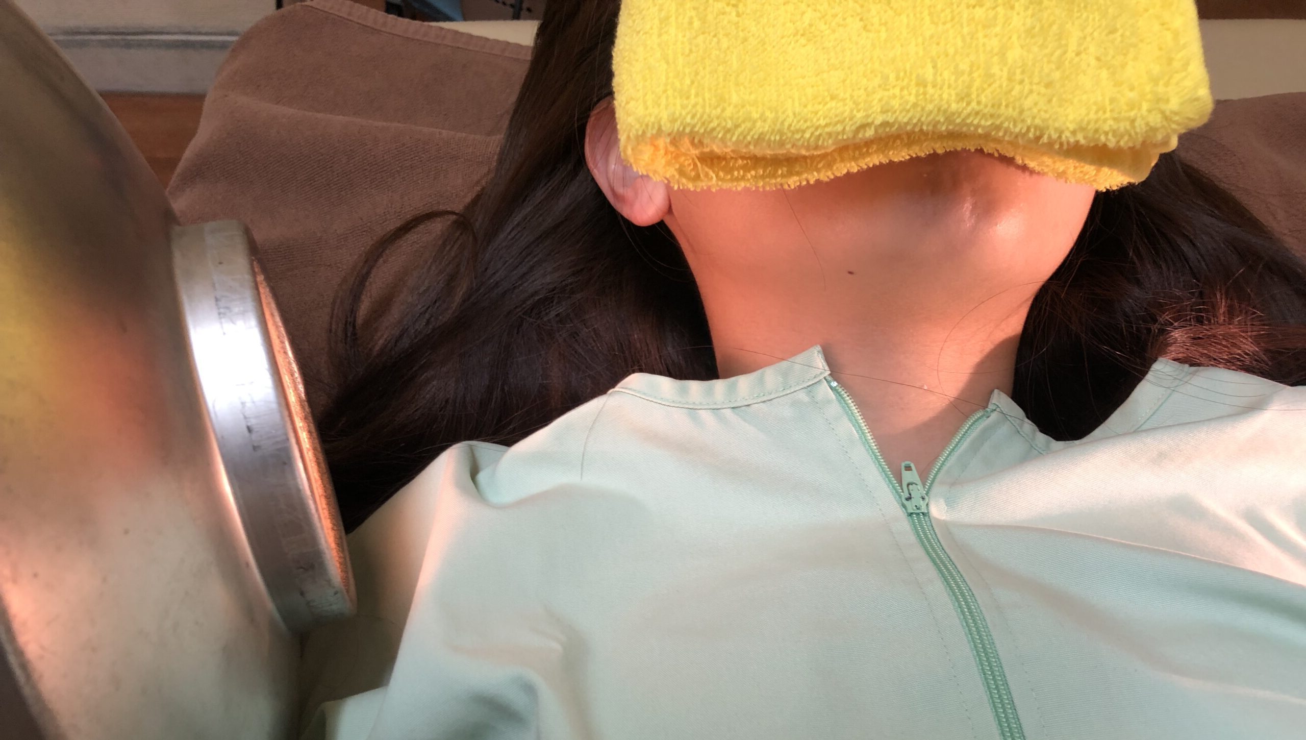 治療用カーボンは3001-4008番を使用し、両足裏部・両膝部・腹部・腰部・右膝部(1号集光器使用)・後頭部(1号集光器使用)・口中部(2号集光器使用)・右頬部(2号集光器使用)。