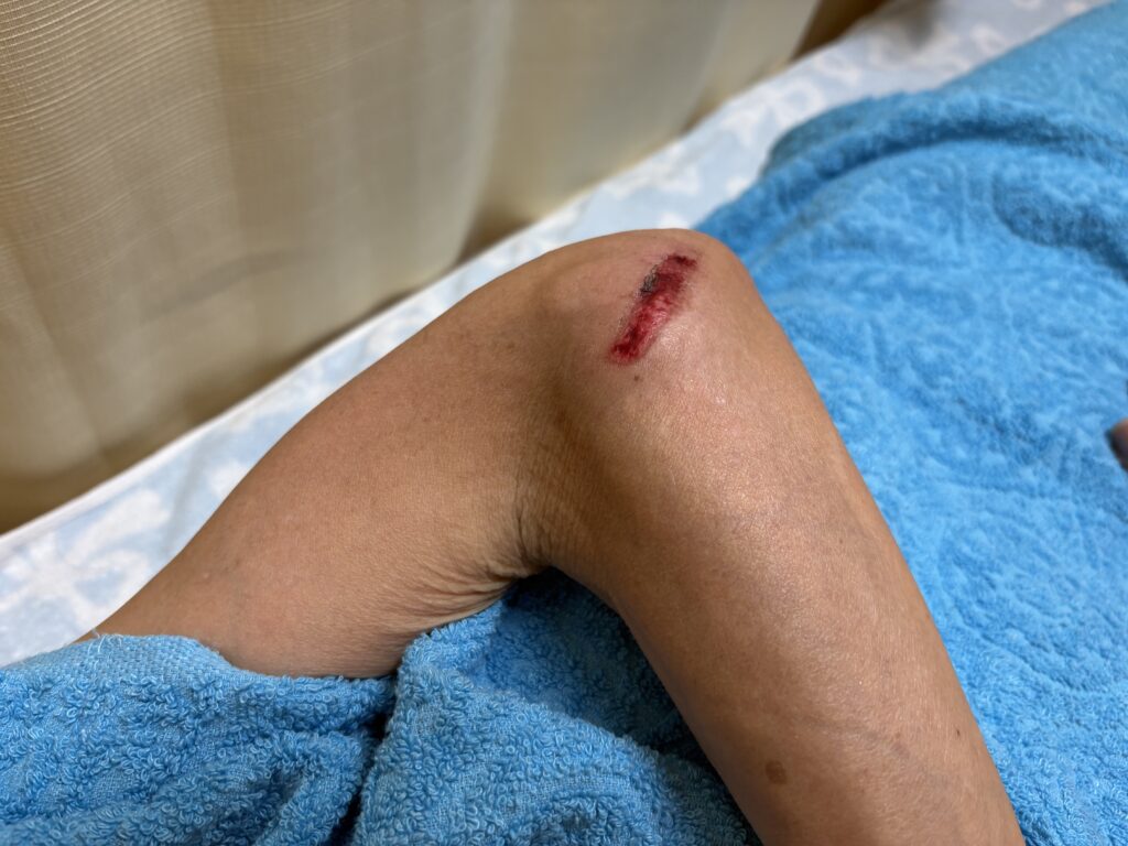 この程度のすり傷であれば、消毒とコウケントー光線治療で対応します⇩