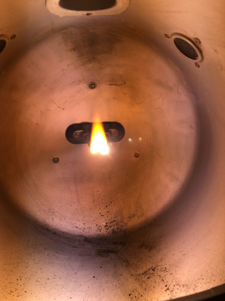 ③カーボン同士を接触させて光と熱を出す際は、必ず炎を2cmくらい上がるようにしてください。