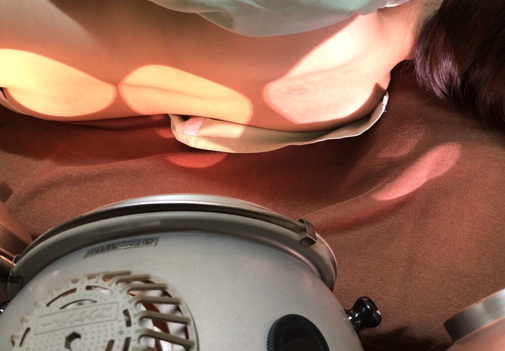 1時間のうち、50分はコウケントー光線で、マッサージは10分という感じで行います。首をむやみにほぐすと翌日に首が回らなくなり、よりひどい症状が出ることがありますので、光線をしっかりと行いましょう。