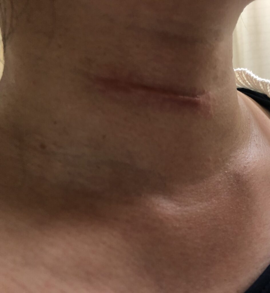 頭部や頚部の手術後の傷痕は、服では隠せない部分なので、出来るだけ目立たなくしたいのは当然の心理ですね。