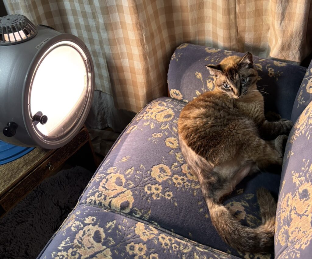 ご自宅で光線照射を実施。平日は飼い主さんのお仕事の都合で、朝1時間、帰宅してから3時間。週末は1日中当てていたそうです。