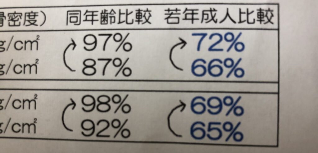 ※ただし、股関節部の骨密度は他の部位に比べると上がりにくいです。